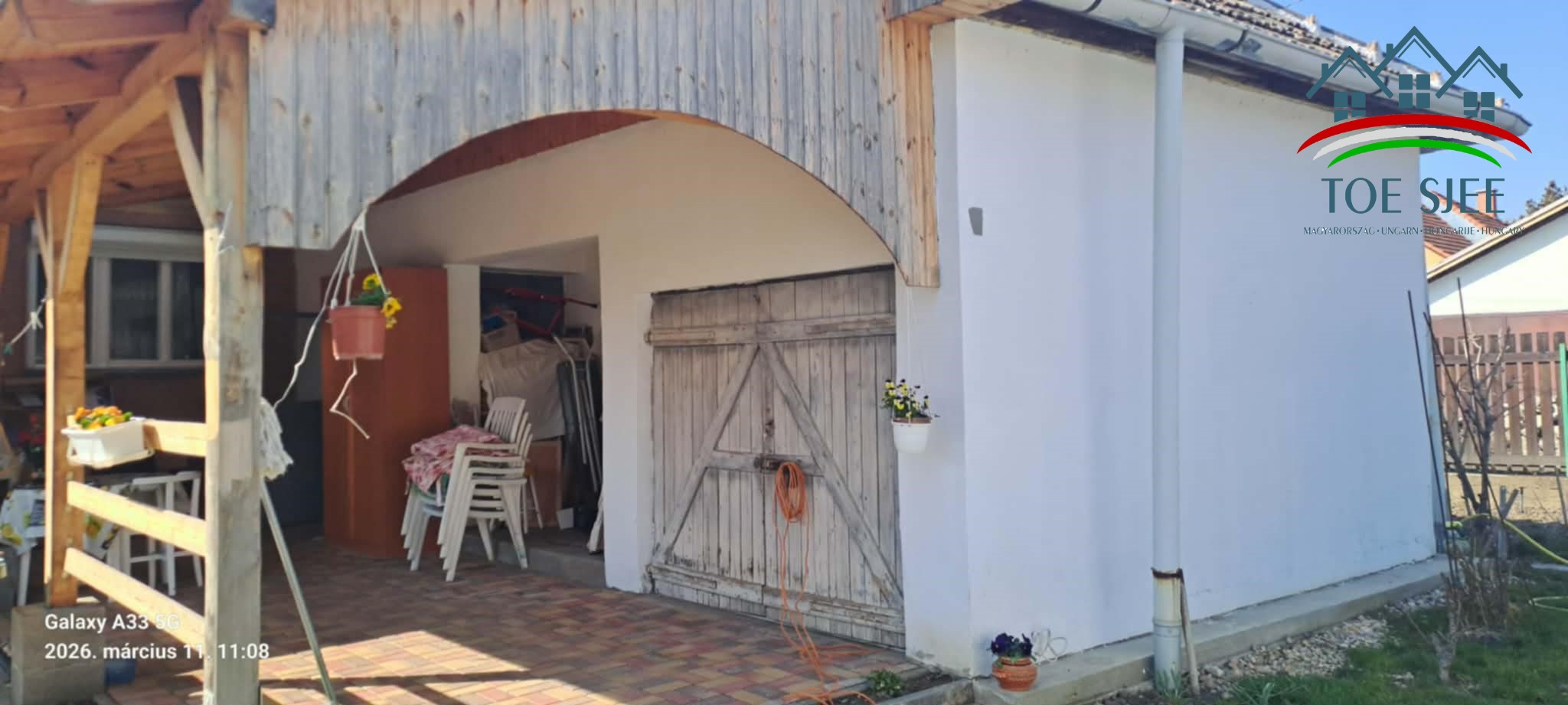 A terasz rész fedett, és új térkő lett lerakva. A ház mellett másik két tároló is van, egy régi építésű, és egy teljesen felújított, járólappal ellátott helység.