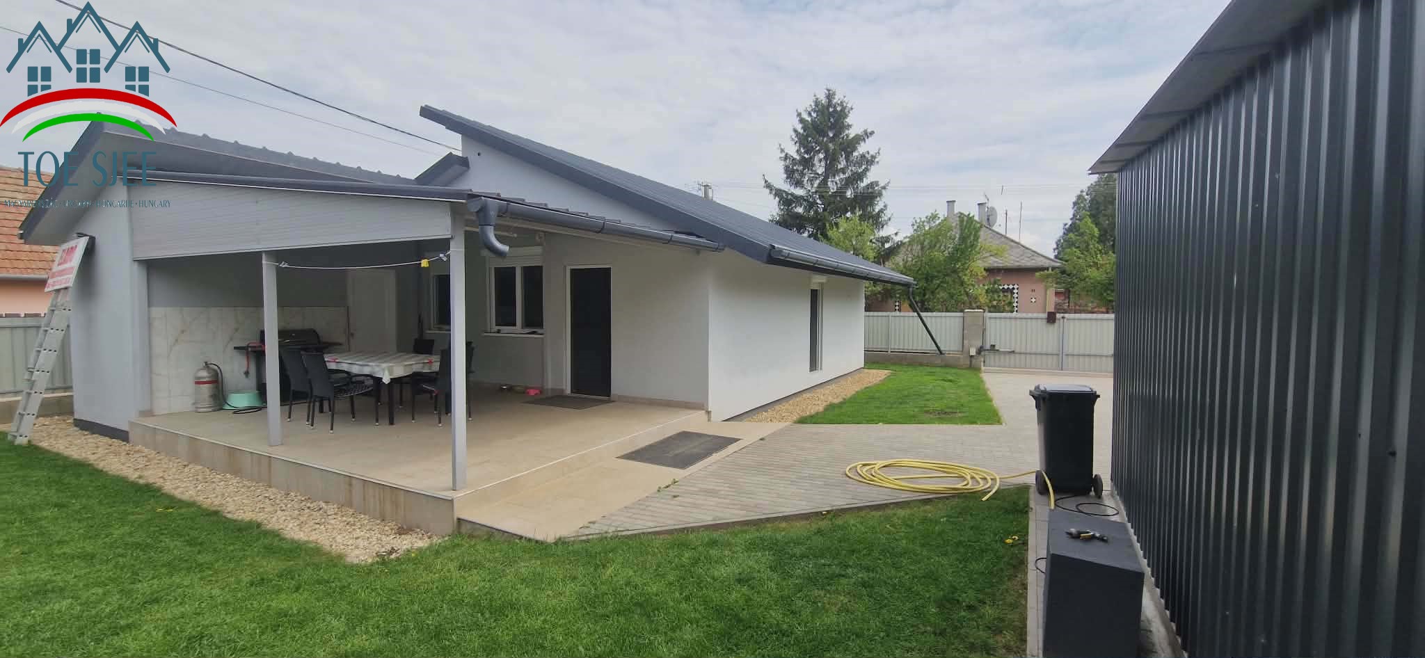 A könnyűszerkezetes ház 2023 és 2024 között épült, fém vázzal szendvicspanelből. 15 cm vastag hungarocell szigeteléssel rendelkezik így minimálisak a rezsiköltségek. Alapterülete 108 m2, tartozik hozzá egy 7×7 m-es garázs. A hálószobákban laminált padló, a kamrában, konyhában, fürdőszobában és nappaliban hidegburkolat van, továbbá mindenhol található padlófűtés. A kamra és a fürdőszoba elektromos szellőzőkkel rendelkezik. Dupla üveges PVC nyílászárói vannak. Az ingatlan csendes utcában található közel a központhoz, a strandhoz és a kikötőhöz. Berendezéssel együtt kerül értékesítésre.