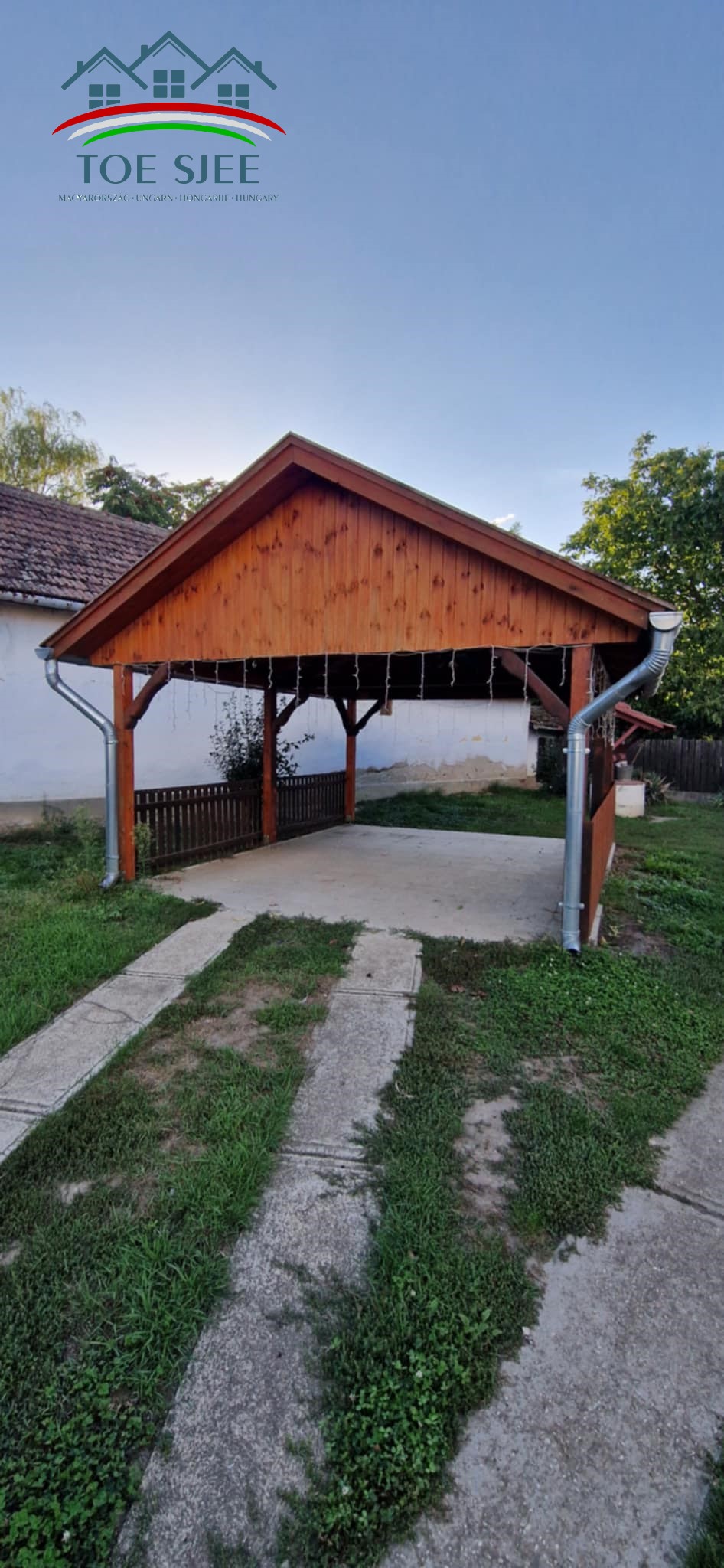 Az udvaron egy fűthető és elektromos ajtóval felszerelt garázs, kettő autó beállására alkalmas fedett beálló és egy kiépített kiülő található, mely megfelelő helyszínt nyújthat baráti, családi összejöveteleknek.